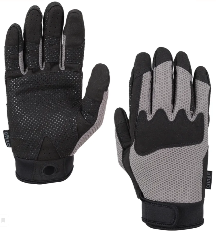 - Внутренняя сторона ладони и пальцев из искусственной замши, с перфорацией для вентиляции на нескольких участках. Усиление вторым слоем искусственной кожи в наиболее нагруженных местах, с точечным силиконовым покрытием для защиты от проскальзывания