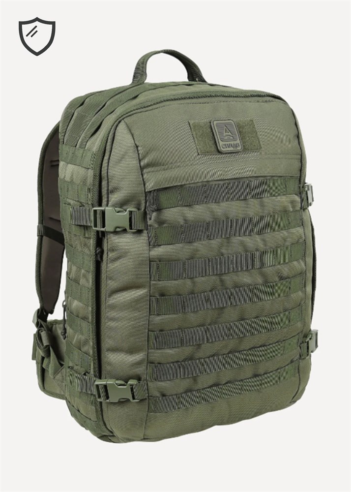 - Вся свободная внешняя площадь ранца обшита стропами MOLLE