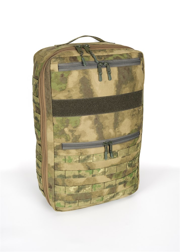 - Фронтальная стенка с двумя врезными карманами, платформой MOLLE и Velcro- панелью