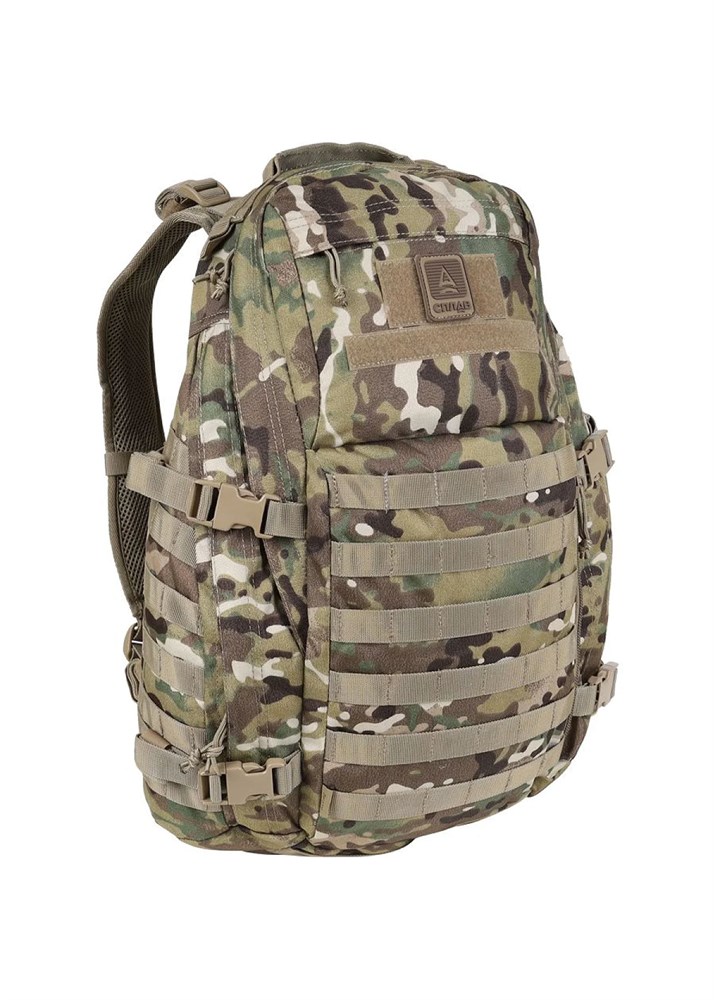 - Несъемные лямки с анатомическим силуэтом. Два слоя пены и сетка Airmesh для мягкости и вентиляции. Верхние оттяжки. Ячейки PALS/MOLLE для крепления подсумков выполнены методом лазерной резки в усиленной ткани, что обеспечивает лямкам тонкий профиль и плоскую поверхность, не мешая прикладке оружия