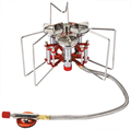 Узел крепления баллона отделен от горелки 40сантиметровым топливопроводным шлангом, что в свою очередь повышает ее устойчивость, а кроме того баллон при необходимости можно подогревать (очень осторожно), не прерывая процесса приготовления пищи.