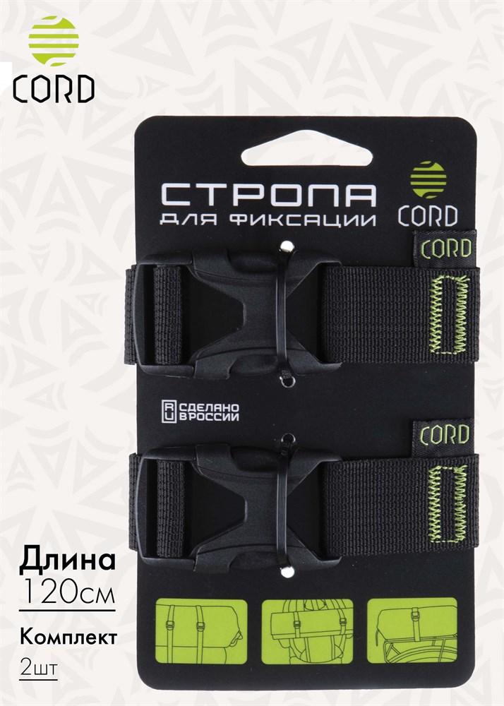 Подходит для крепления небольших грузов. Это удобная альтернатива веревке — больше никаких узлов! Пропустите стропу через крепления на рюкзаке и носите часть снаряжения снаружи. Стропы на трехщелевке можно смело использовать и для закрепления грузов на багажнике велосипеда.